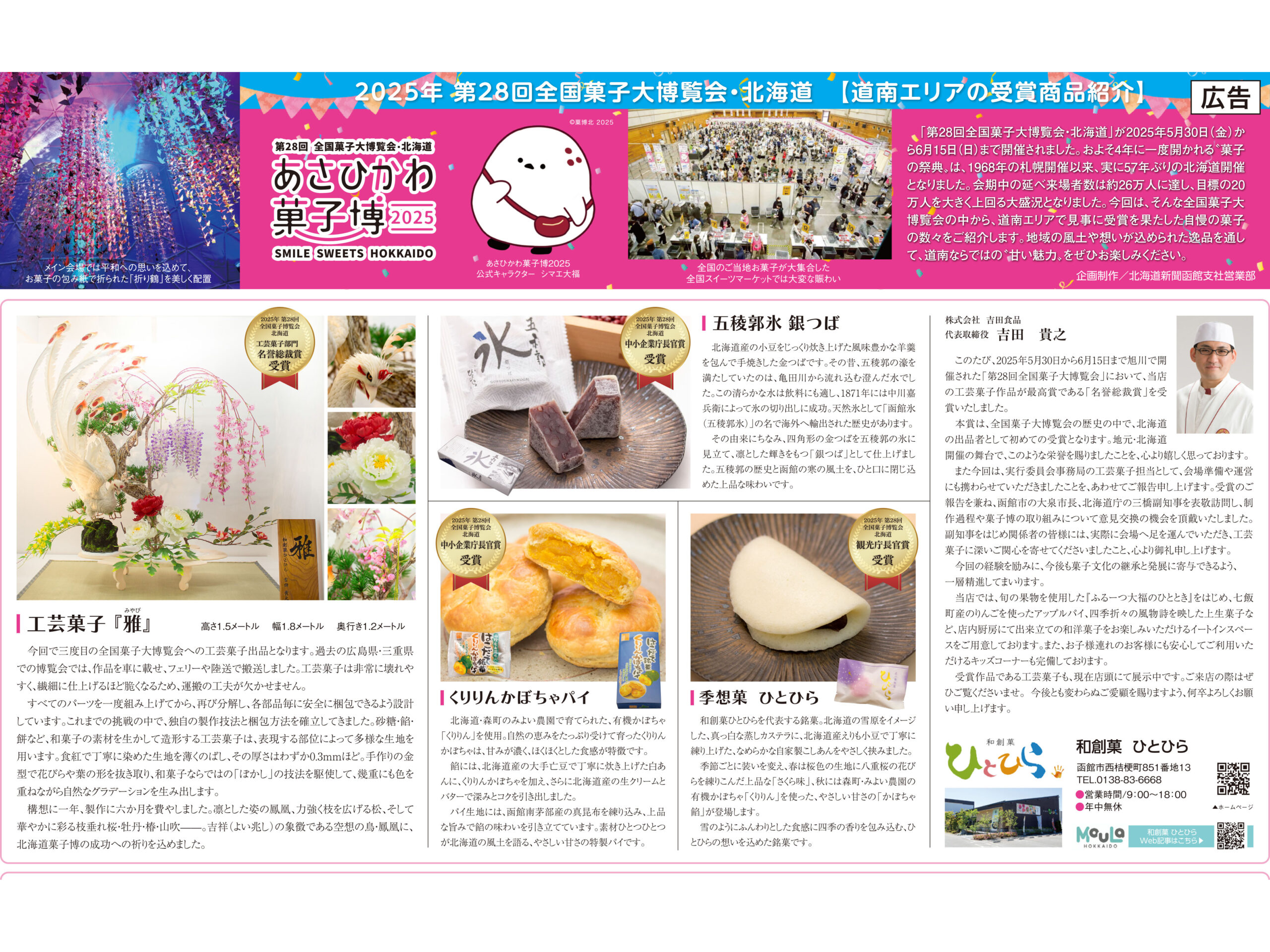 ALL イベント情報 お知らせ メディア掲載 カテゴリから選ぶ All イベント情報 お知らせ メディア掲載 2025年12月26日 新年の上生菓子と限定のセット お知らせ 2025年12月26日 口取り、のし餅、お正月向け商品の販売を開始いたします。 お知らせ 2025年12月08日 あさひかわ菓子博2025(12月6日北海道新聞掲載) お知らせ 2025年10月01日 営業時間変更のお知らせ お知らせ 2025年09月30日 ひとひらでは、工場の製造スタッフを募集しております。 メディア掲載 2025年09月10日 全国菓子大博覧会受賞のご報告と受賞商品特別販売について お知らせ 2025年09月05日 8月6日北海道新聞に掲載されました お知らせ 2025年07月29日 全国菓子研究団体連合会 技術コンテストにて 今福さんが上生菓子部門でグランプリを受賞 お知らせ 2025年07月29日 おいしい函館 函館「食」ニュースに紹介されました お知らせ 2025年07月26日 函館市長 表敬訪問のご報告 お知らせ 2025年06月05日 6月4日の北海道新聞道南版に掲載されました。 お知らせ 2025年06月05日 第28回全国菓子大博覧会・北海道(あさひかわ菓子博2025)にて出展した工芸菓子が最高賞の名誉総裁賞に選ばれました。 お知らせ 12...12 次へ
